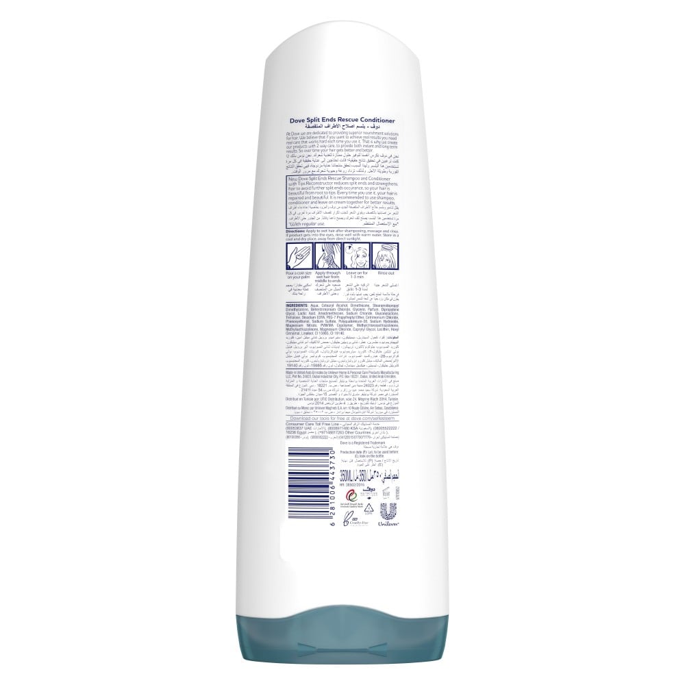 دوف بلسم لإنقاذ الأطراف المتقصفة لتنعيم الشعر وإصلاح التلف بشكل واضح وتقويته ضد التقصف. حتى الشعر الأكثر تضرراً يبدو صحياً يوماً بعد يوم. حيث يعمل البلسم على إصلاح علامات التلف السطحي ويتغلغل تدريجيًا في خيوط الشعر، ويغذيها، مما يجعل الشعر أقوى ضد التكسر، ويجعله جميلًا وأكثر صحة مع كل غسلة.