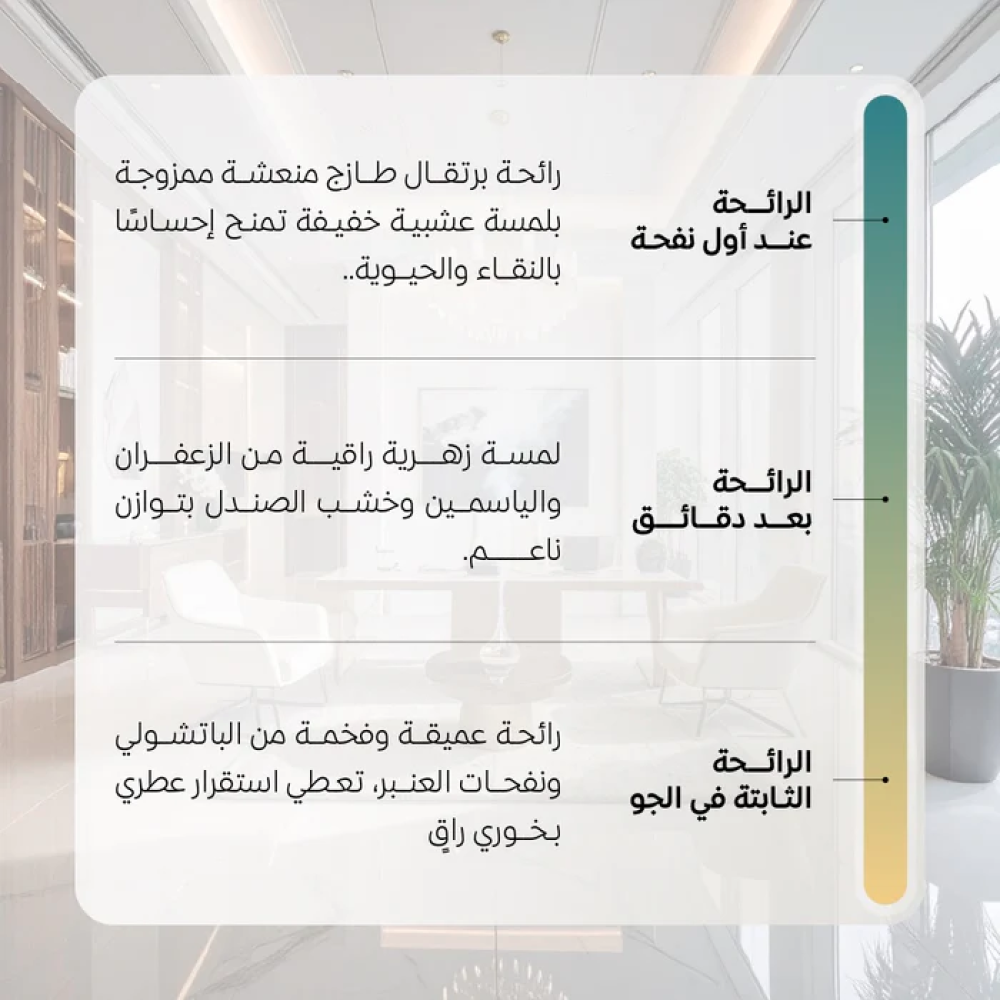 قلب المعطر: ياسمين، ورد، زعفران، بنفسج، صندل.